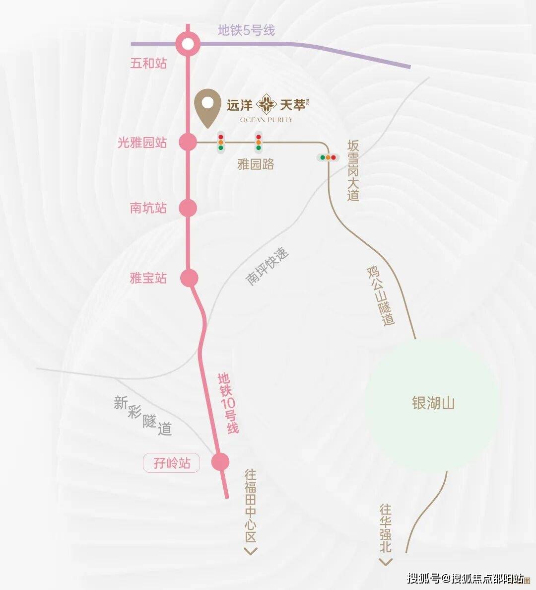 远洋天萃家门口就是“福田专线号地铁线站到五和枢纽站,可换乘5号地铁线站到南山。